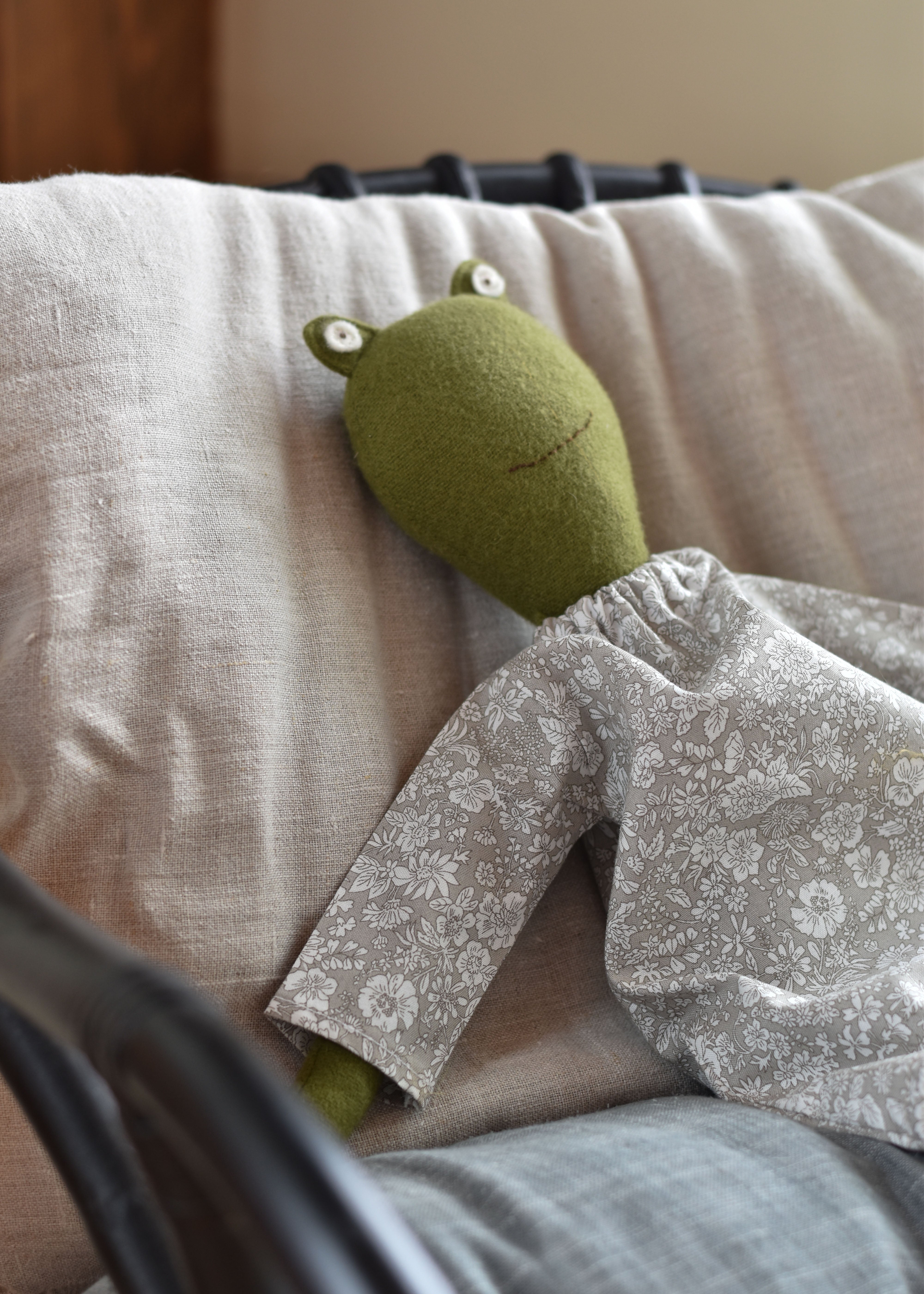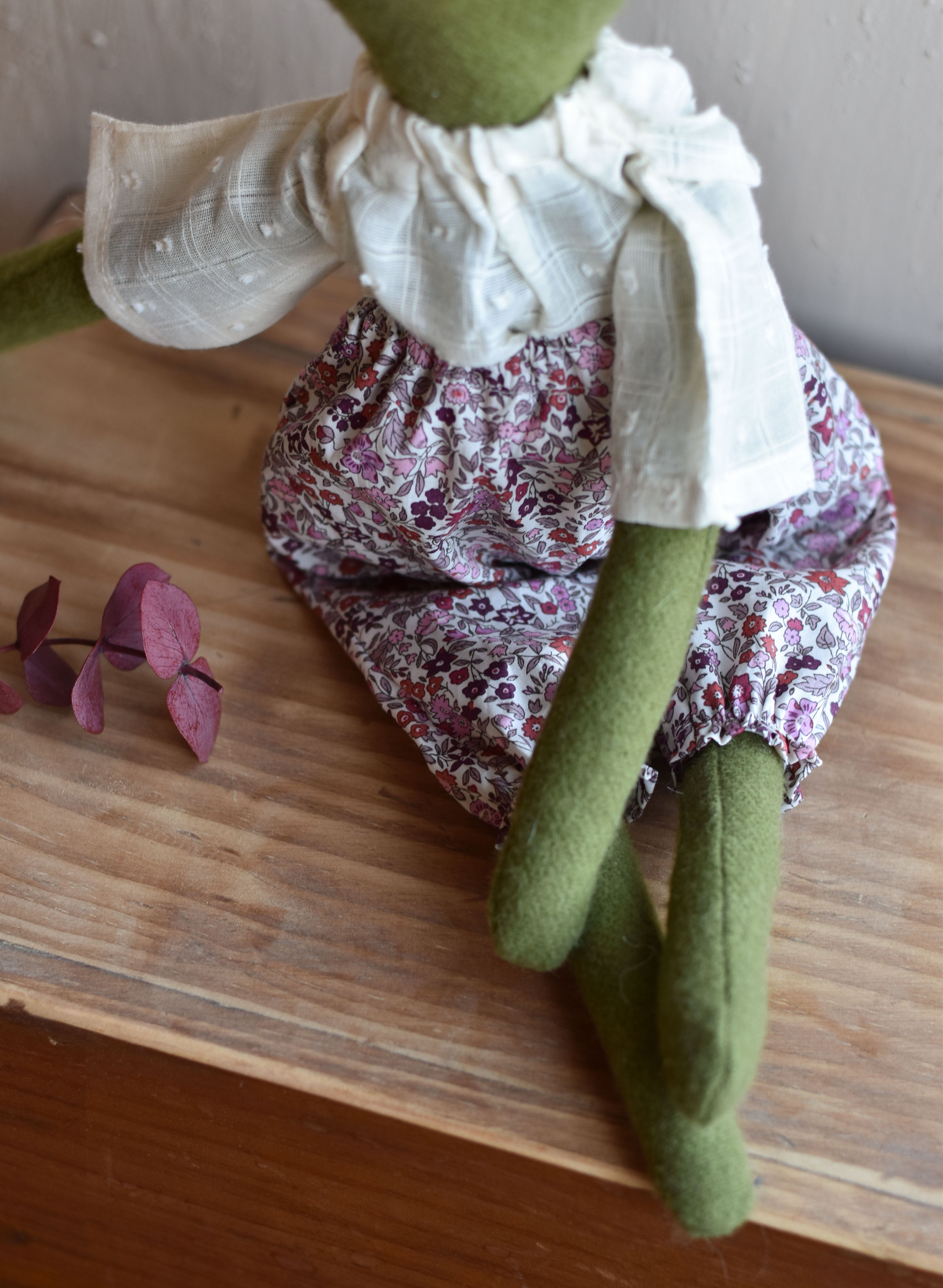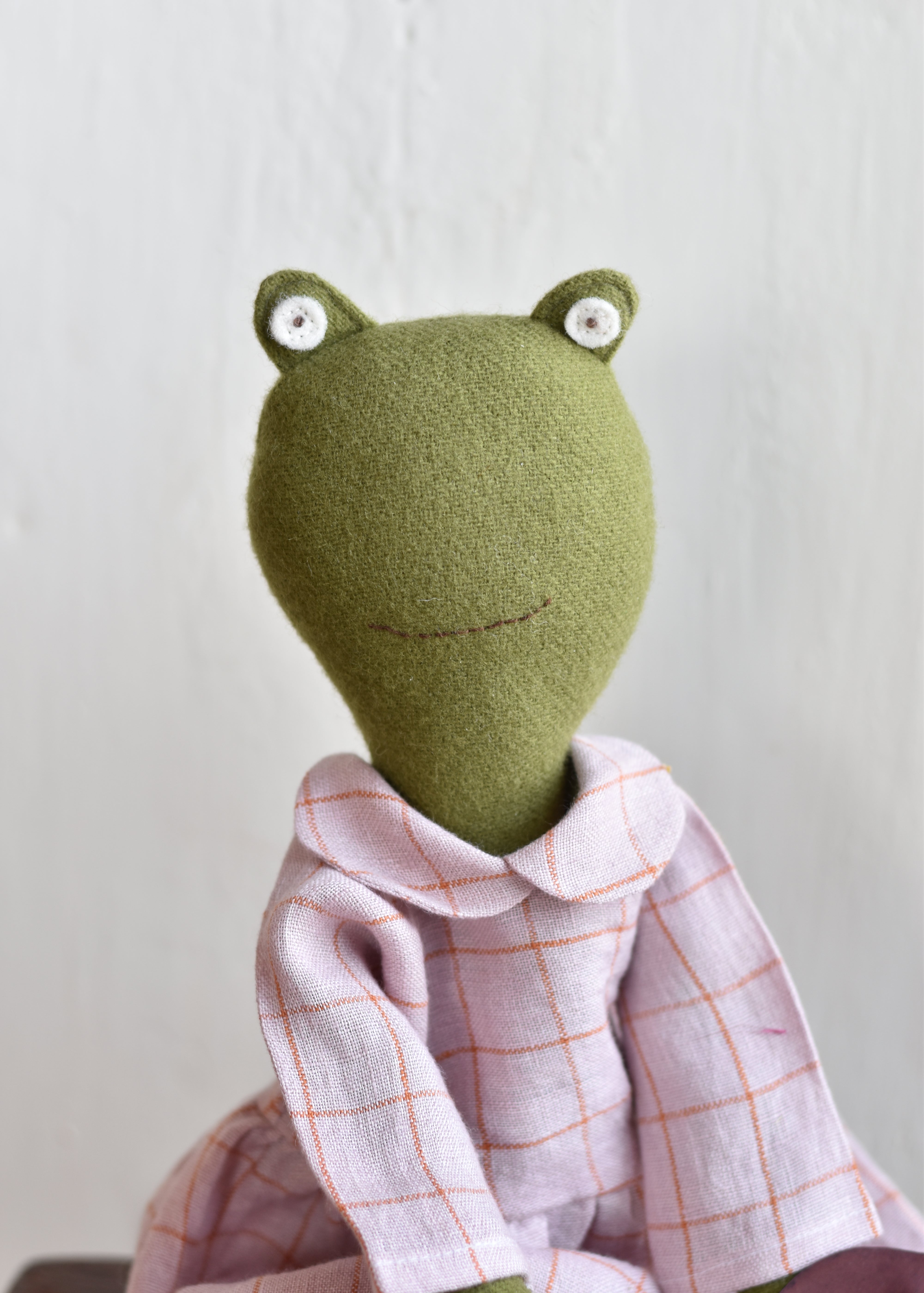 Fern the Frog doll- Oat Sweater with Morning Skirt