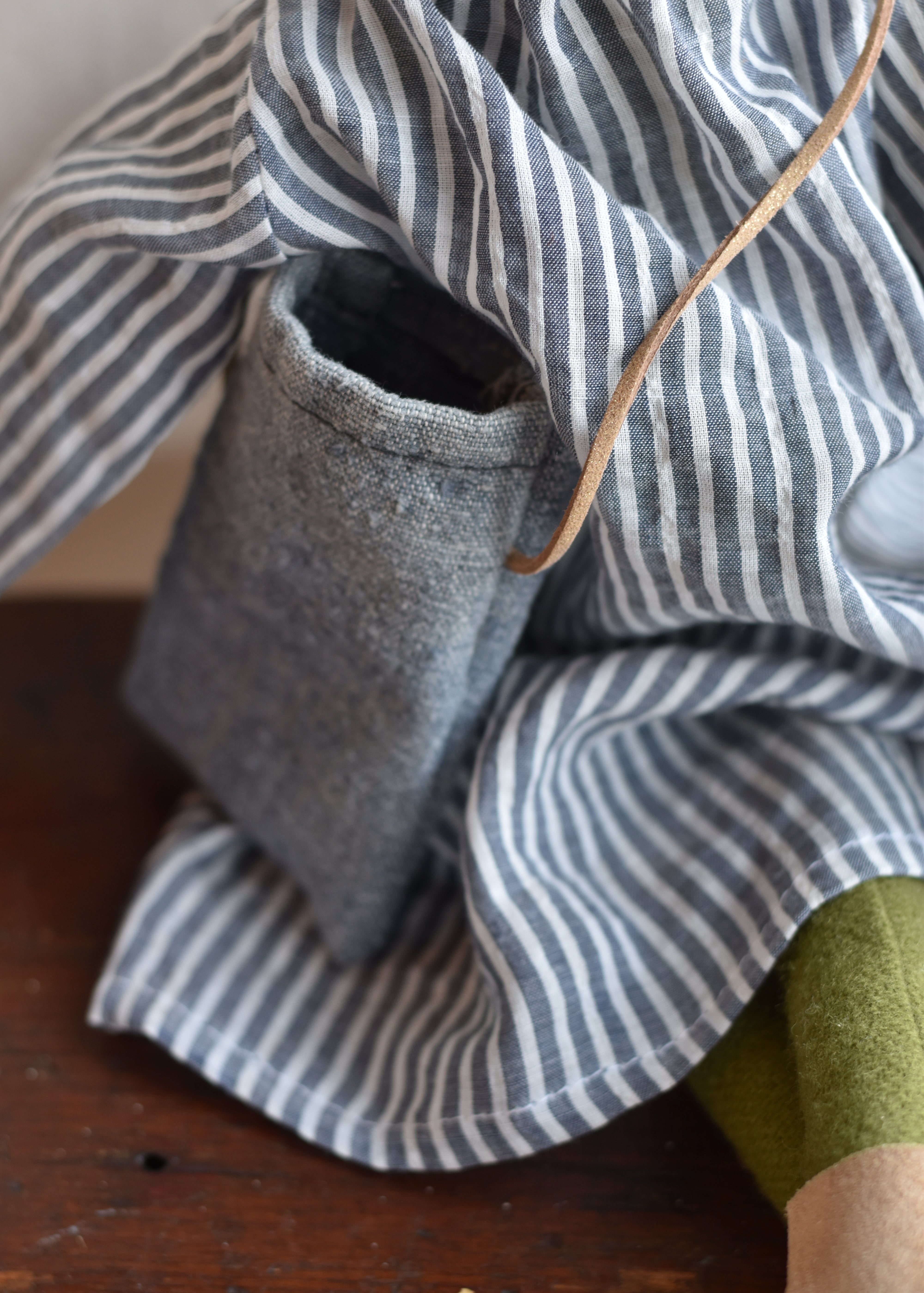 Fern the Frog doll- Cotton Stripe Field Dress with Suede Shoes