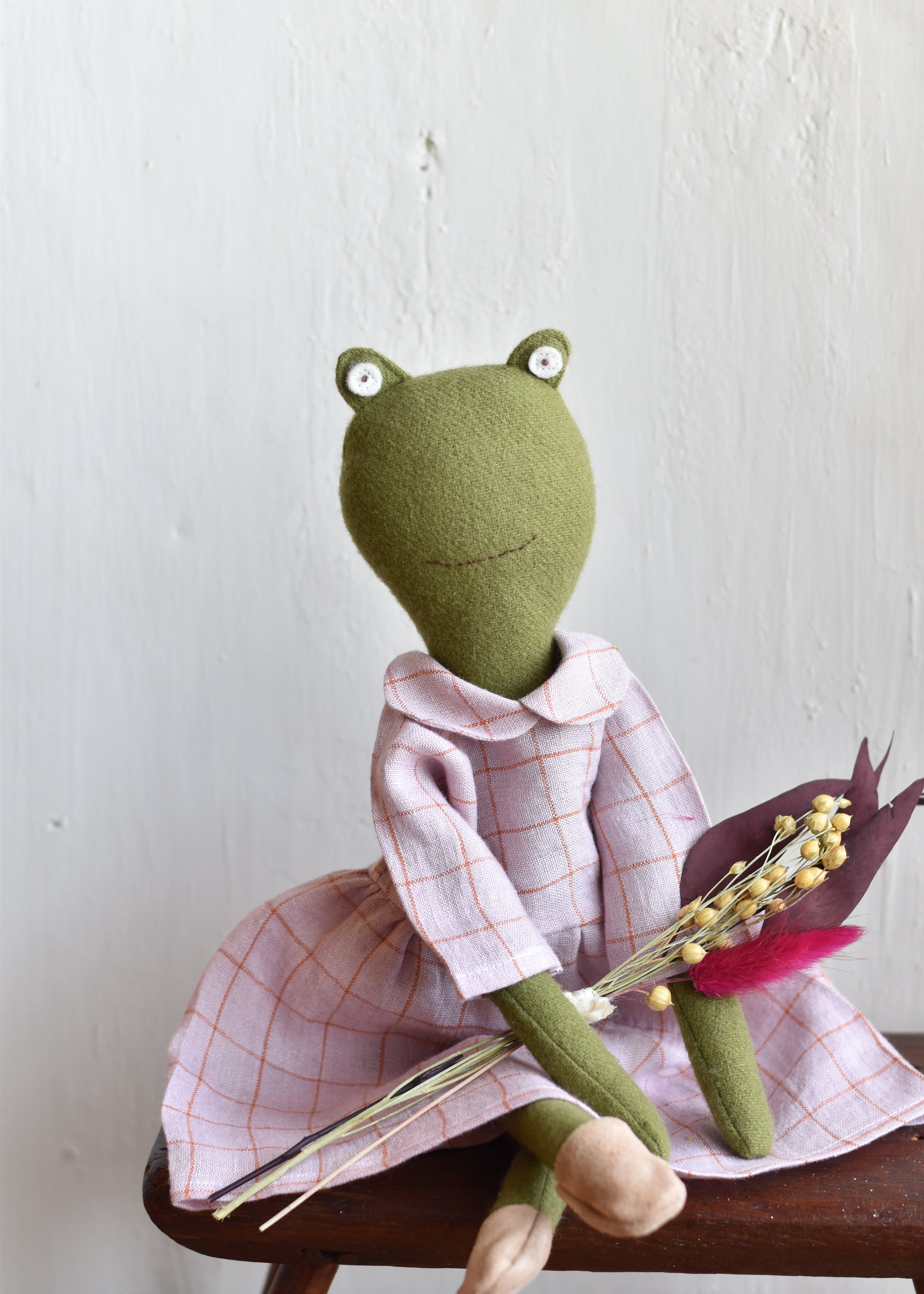 Fern the Frog doll- Ojai Orchard Plaid Gather Dress