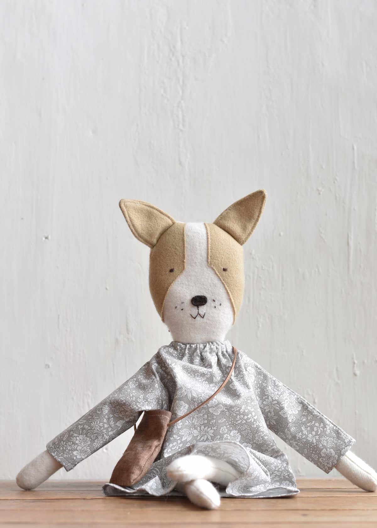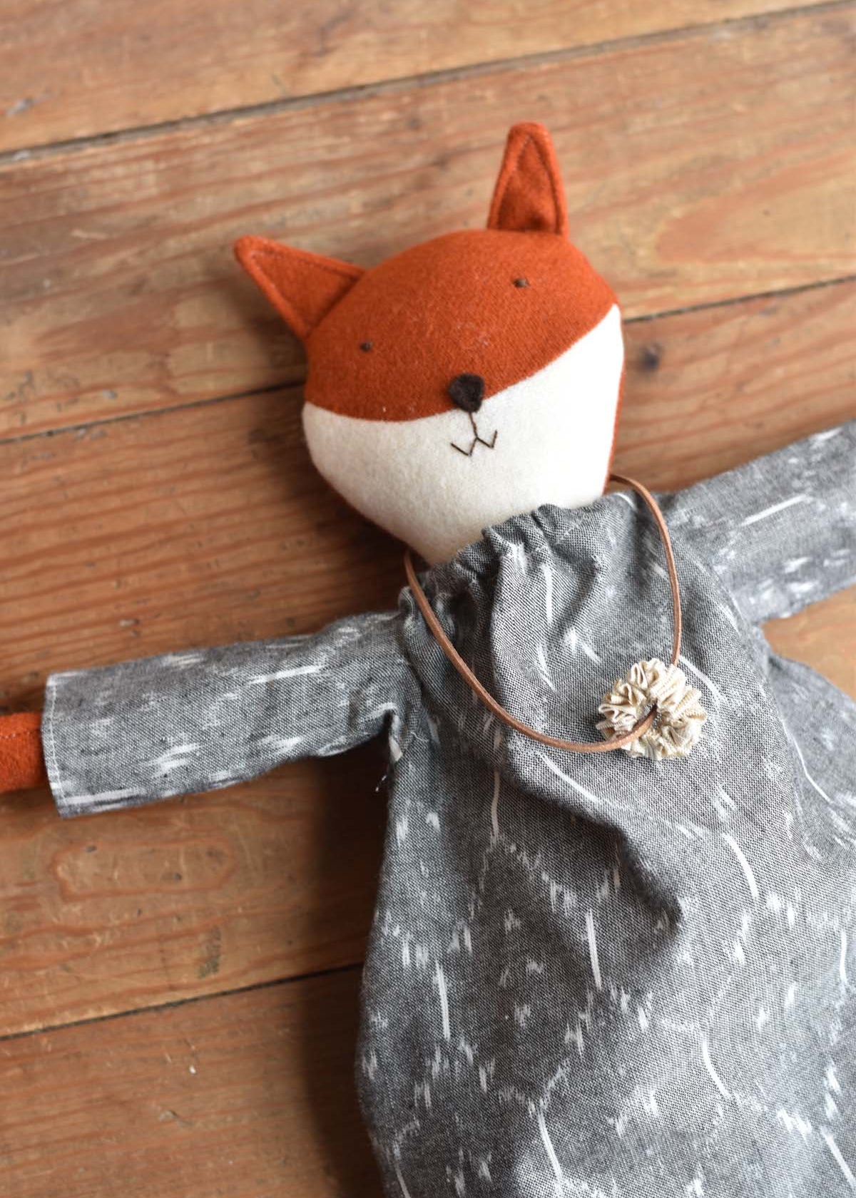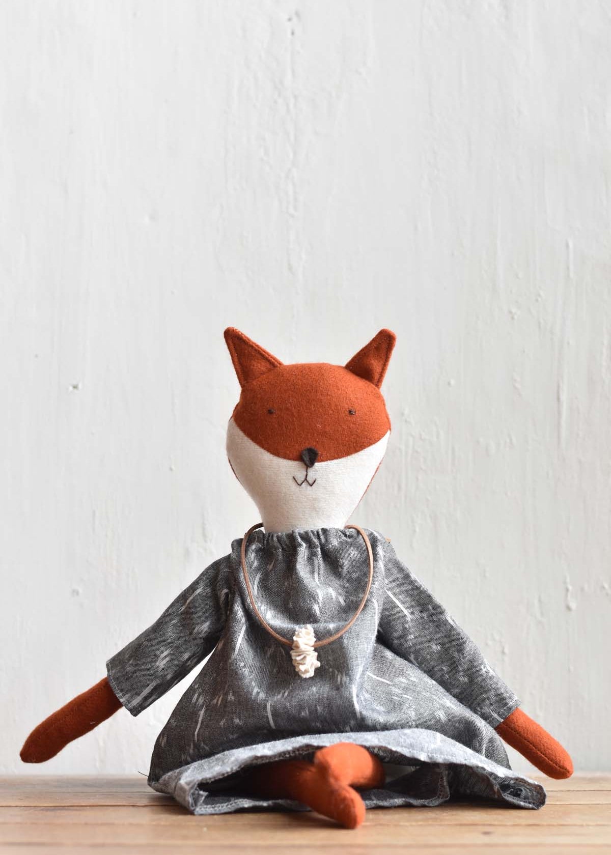 Florette the Fox- Ikat Dress - Handmade Wool Doll - Woolgrass Farm