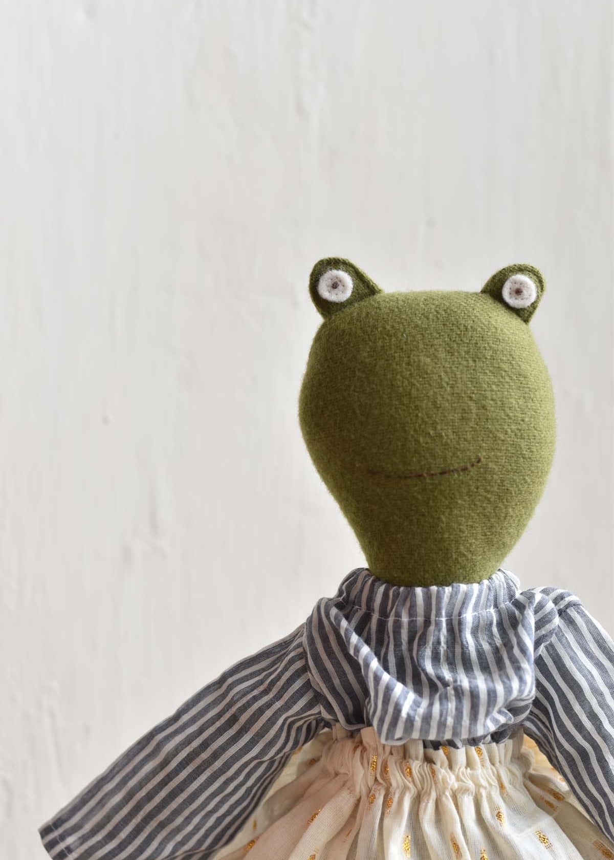 Fern the Frog doll- Handmade Wool Doll - Sparkle Skirt