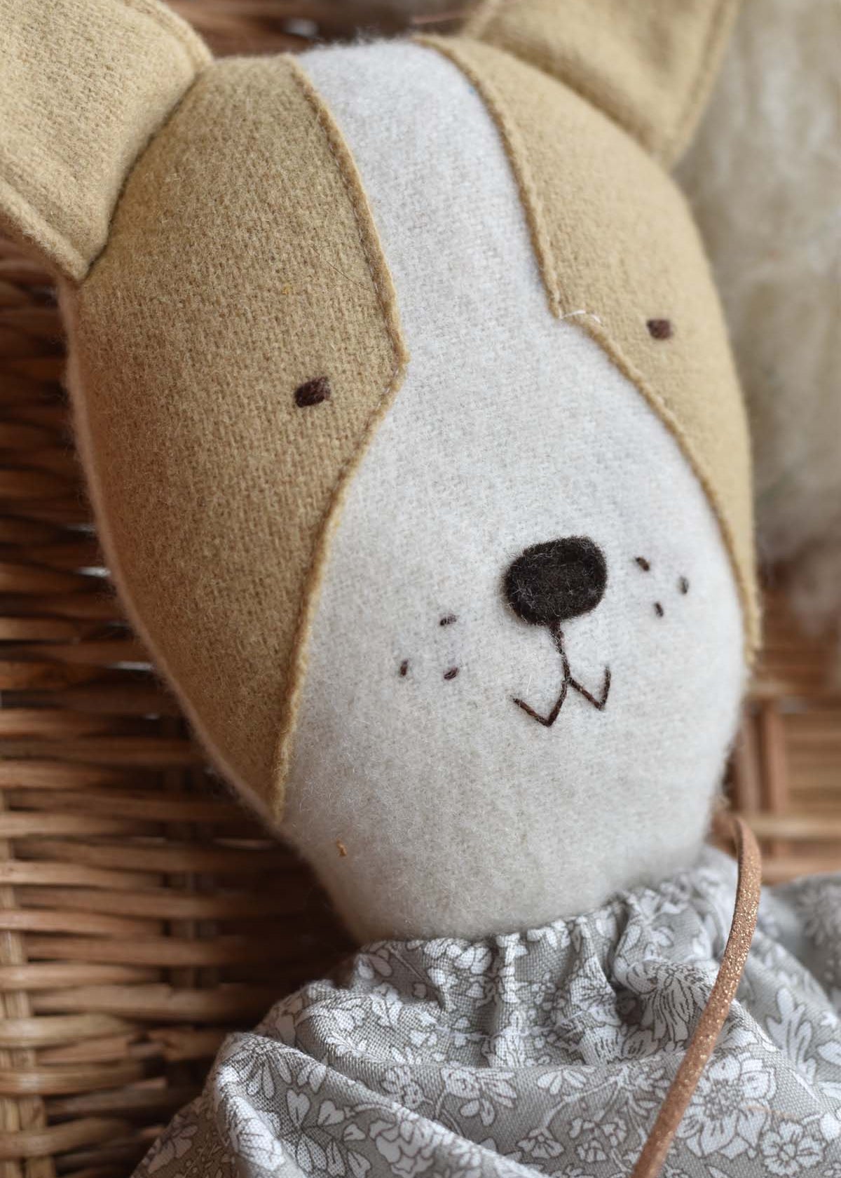Ruthie the Rabbit doll - Ikat Skirt - Handmade Heirloom Toy | Woolgrass Farm