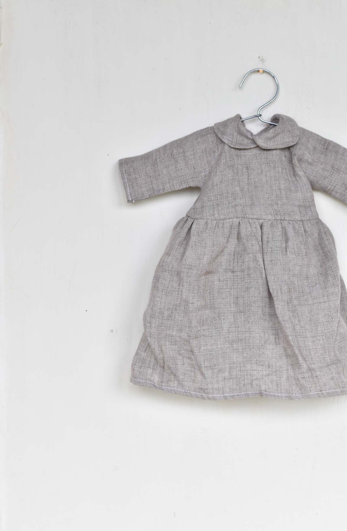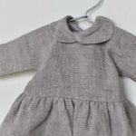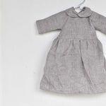 A timeless classic for your heirloom doll collection. This soft, stonewashed linen dress features a sweet Peter Pan collar and gentle gathers at the waist for a nostalgic, vintage-inspired silhouette. The natural flax color pairs effortlessly with any layering piece—perfect for orchard strolls, garden tea parties, or cozy story times.