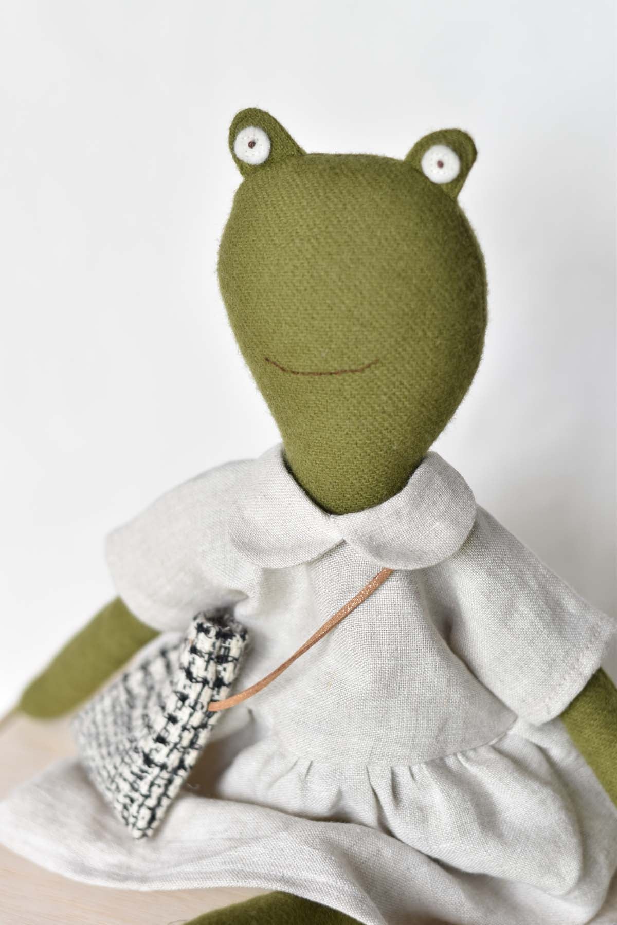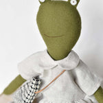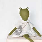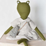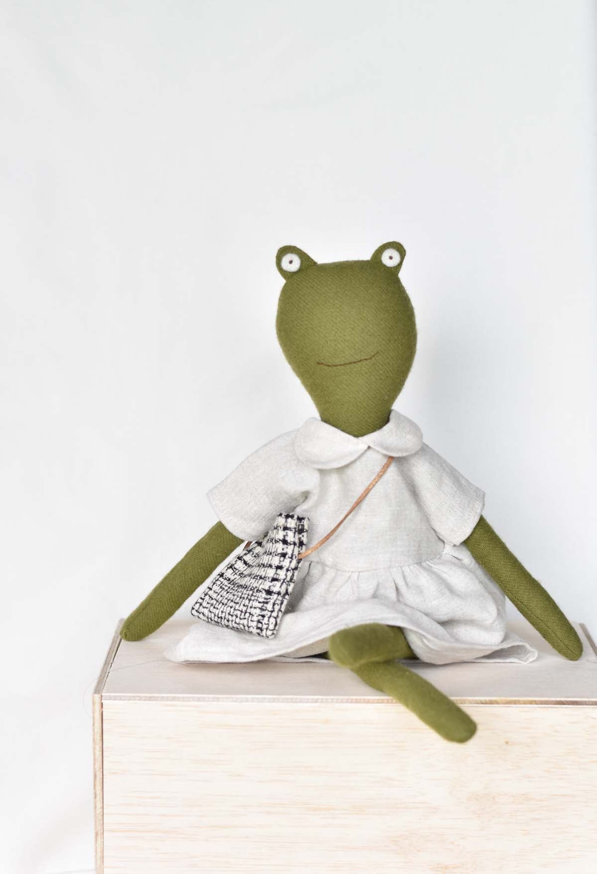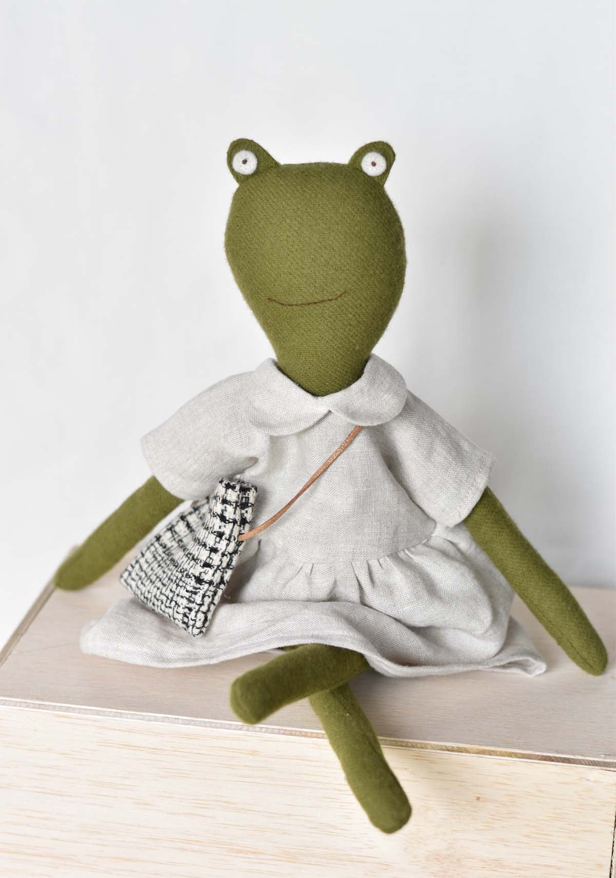 The perfect stuffed frog doll. Our soft and plush woolen dolls are handcrafted using 100% natural fibers sourced from American farms. Each doll is stuffed with 100% natural wool. They're durable, safe and eco-friendly! Each heirloom quality doll is designed to be loved for generations.