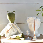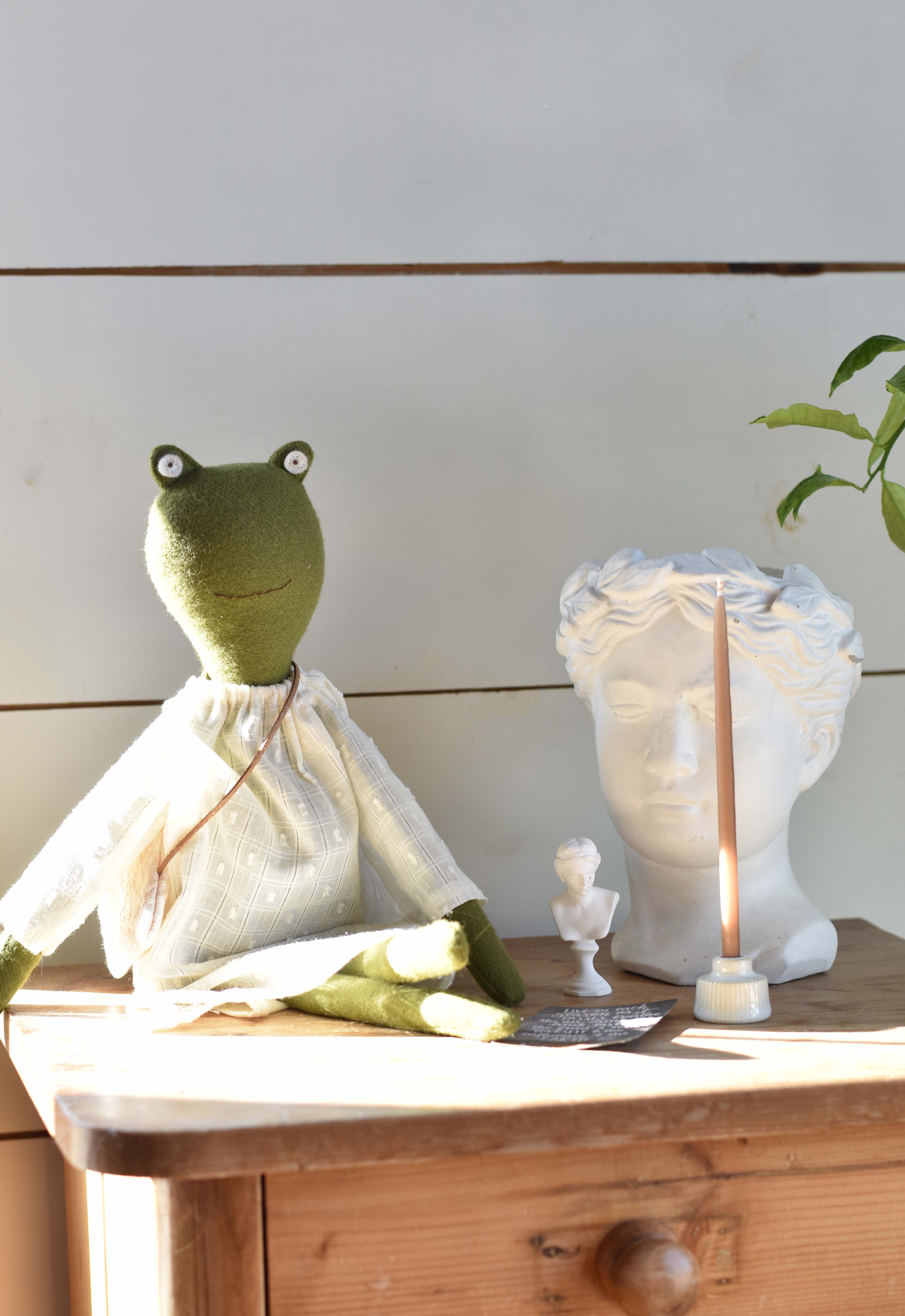 The perfect stuffed frog doll. Our soft and plush woolen dolls are handcrafted using 100% natural fibers sourced from American farms. Each doll is stuffed with 100% natural wool. They're durable, safe and eco-friendly! Each heirloom quality doll is designed to be loved for generations.