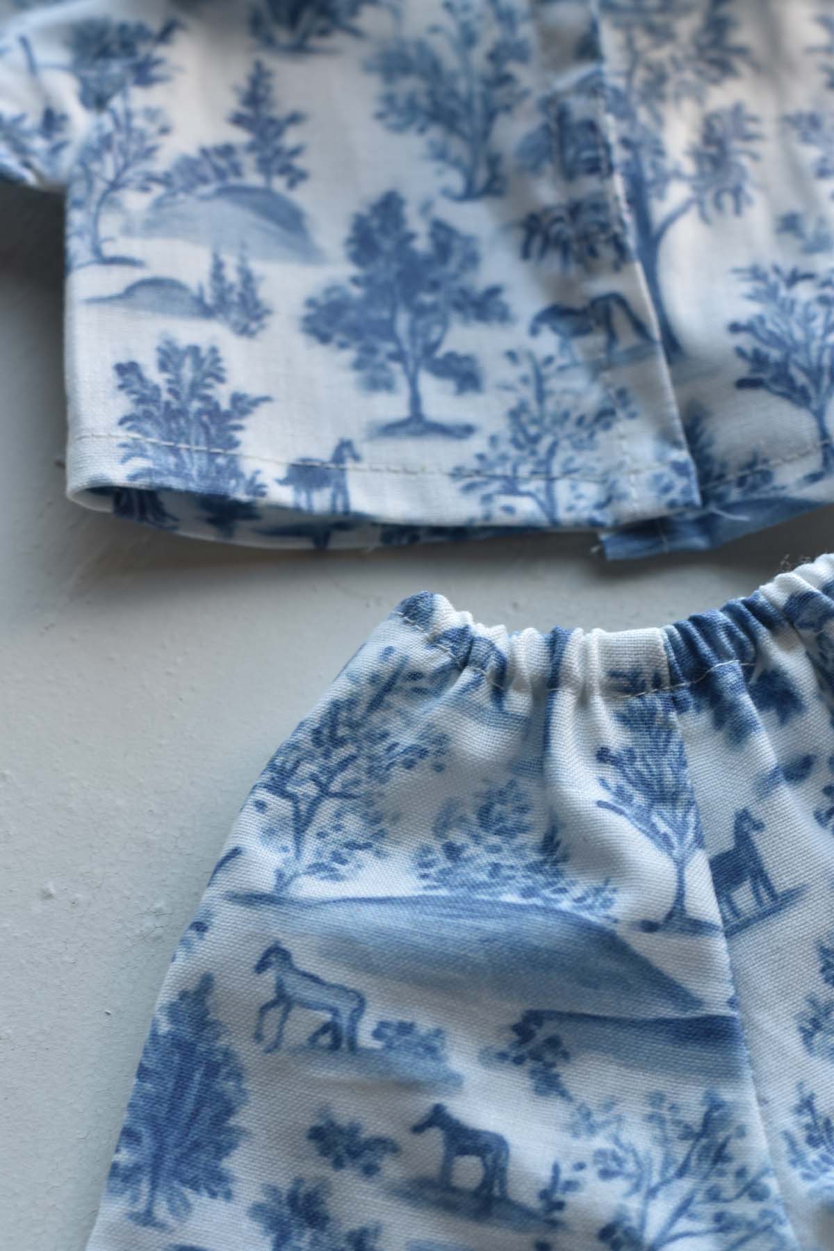 The Horse Hill print was originally painted by California artist Stevie Howell, adding a touch of storybook charm and painterly detail to Fern’s cozy sleepwear.