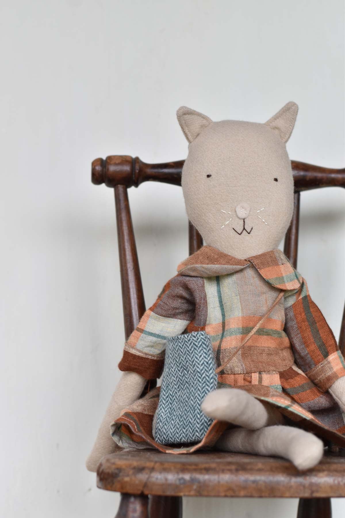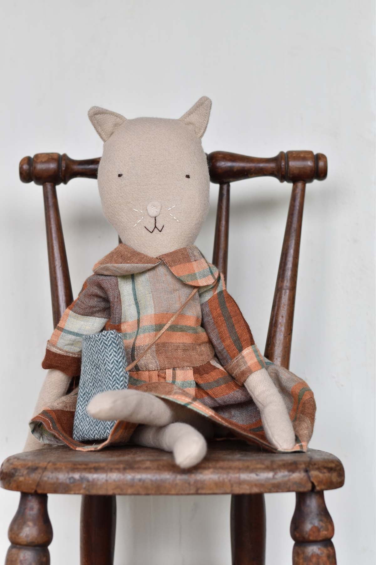 The perfect stuffed cat doll. Our soft and plush woolen animals are handcrafted using 100% natural fibers sourced from American farms. They're durable, safe and eco-friendly! Each heirloom quality animal is designed to be loved for generations.
