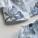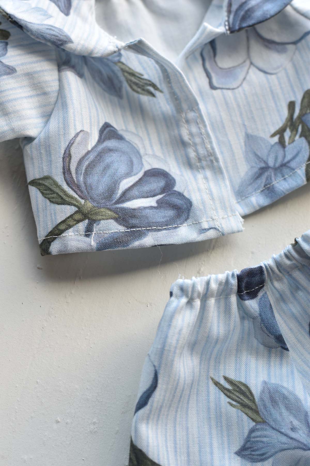 The painterly magnolia print was designed by California artist Stevie Howell, bringing her signature botanical elegance to this heirloom piece.